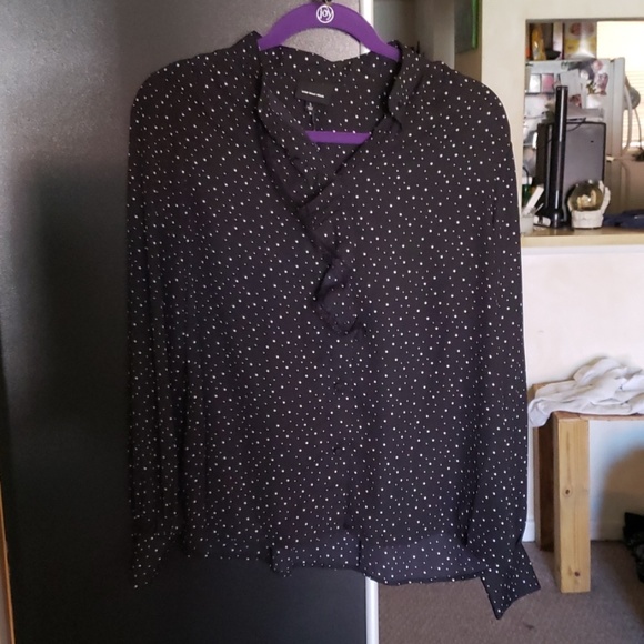 Black, long sleeve, button down, small stars for design