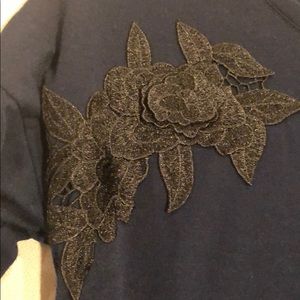 Never worn, Navi blue with black flower accents. Stretchy material. Will fit S and M size