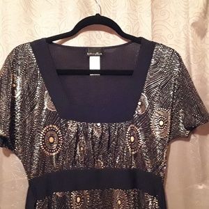 Size M brittany black short sleeve blouse. Black with gold. Square neckline with black sash that ties in the back.