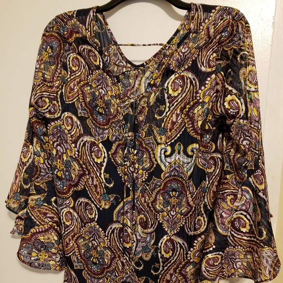 Sheer paisley blouse with blue attached camisole. Retro type sleeves. Super cute.