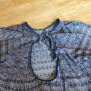Fun light blouse with open sleeves at shoulder. Tie with open back.