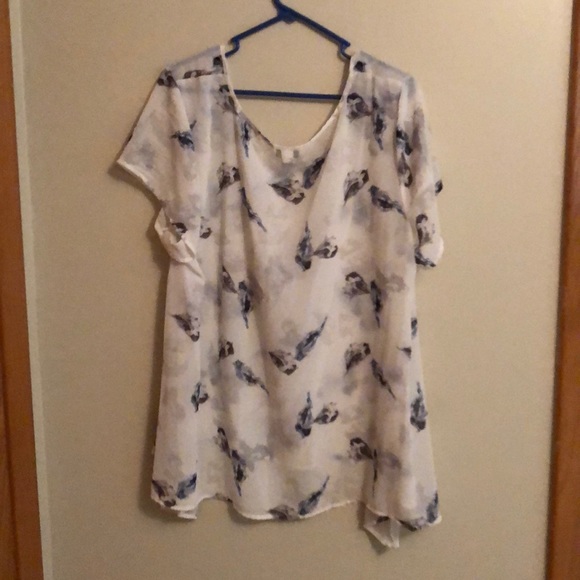 Sheer 2 layer blouse with random bird pattern