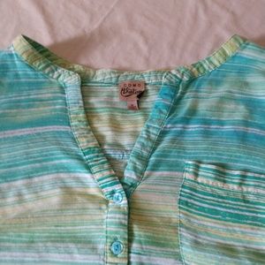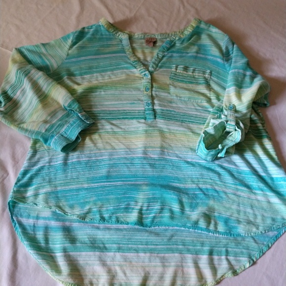 ¾ length sleeves lightweight top. Sleeves can be with as ¾ length or buttoned up to make shorter, slouchy look.