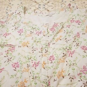 Cream with multiple print brown, pink, green etc ,good condition , also has cream lining, light weight material, comfortable