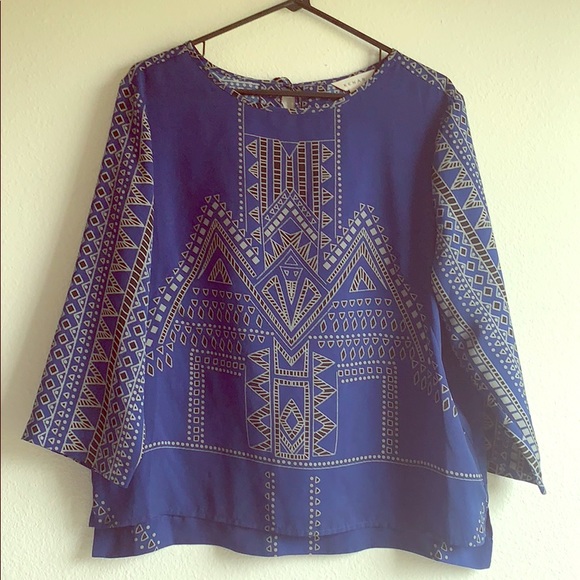 Royal blue printed blouse, non-stretch