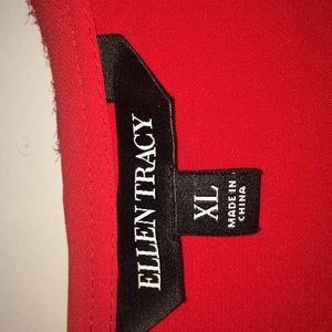 Bright red polyester and spandex blend long sleeved blouse. Backside at bottoms is see-through mesh that creates a longer length.