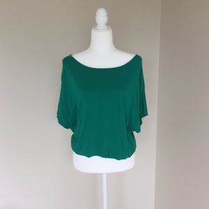 Bright green blouse with wing sleeves very flattering