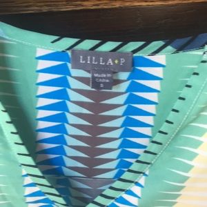 Polyester top Comfy. Colorful. Great with whites pants
