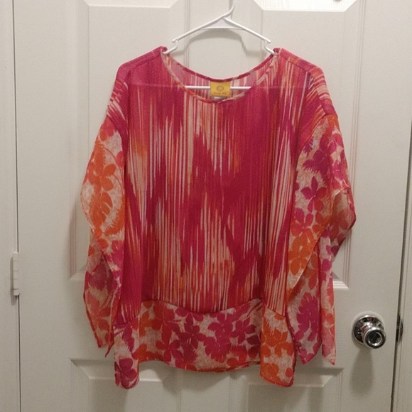 Pink, orange and white blouse. Worn a handful of times. Striped with flowers on it. Super bright colors that's perfect for vacation!