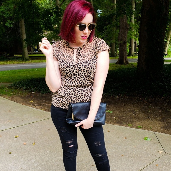 Leopard print sheer peplum blouse