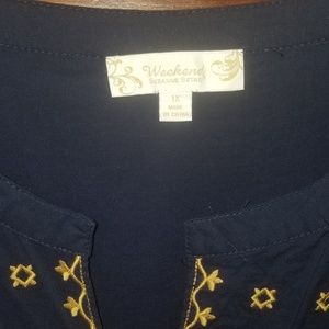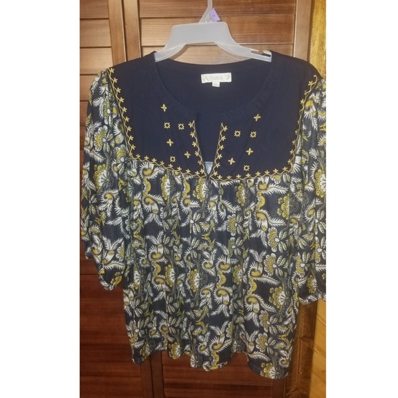 Navy, yellow, flowy top. Worn very little. Really cute with jeggings or leggings!