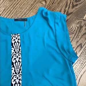 Gorgeous cap-sleeve dress blouse from THML. Measures 17” across bust and 26” in length. Excellent condition! No signs of wear, snags, or pulling!