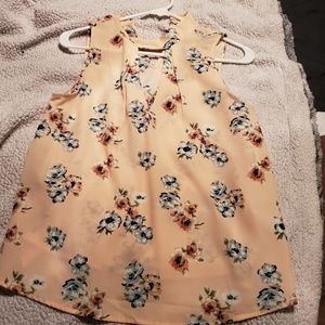 Sleeveless blouse, pink and green, flower,