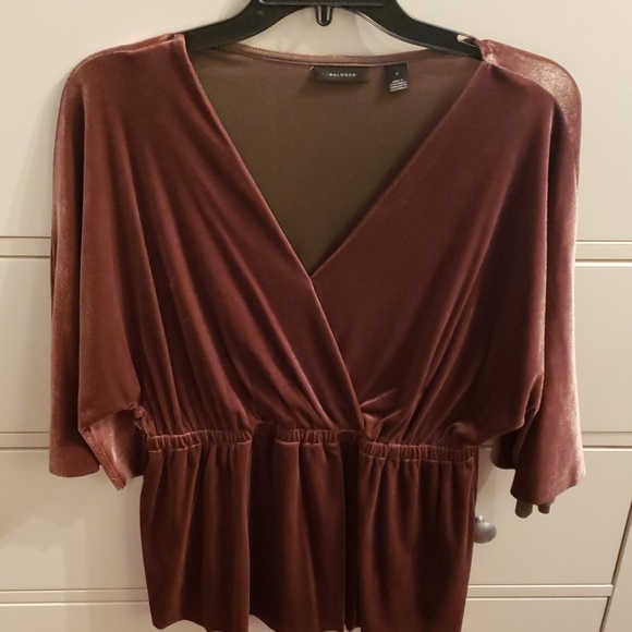 Velvety blouse, beautiful color, drapey fit, flattering.