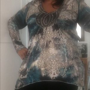 Curvy girl flattering, Silky, light weight material. Uneven hem. Way cute on. The tag says xxl, but is more like a large.