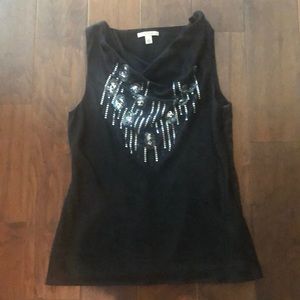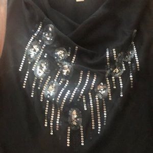 Black, sleeveless 100% machine washable, gentle, Cowel neck blouse.