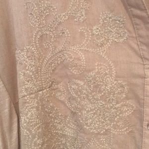 Long sleeve high low embroidered close.