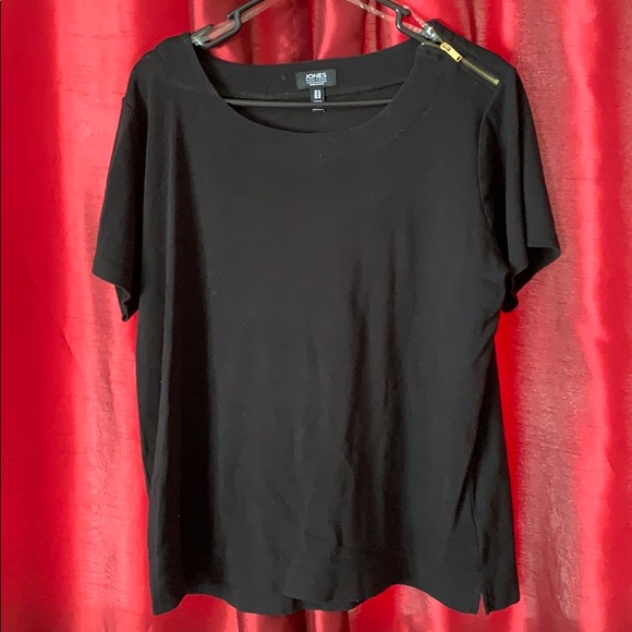 Jones New York Signature black blouse with gold zipper embellishment, 1X, NWOT