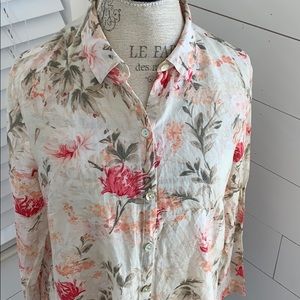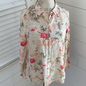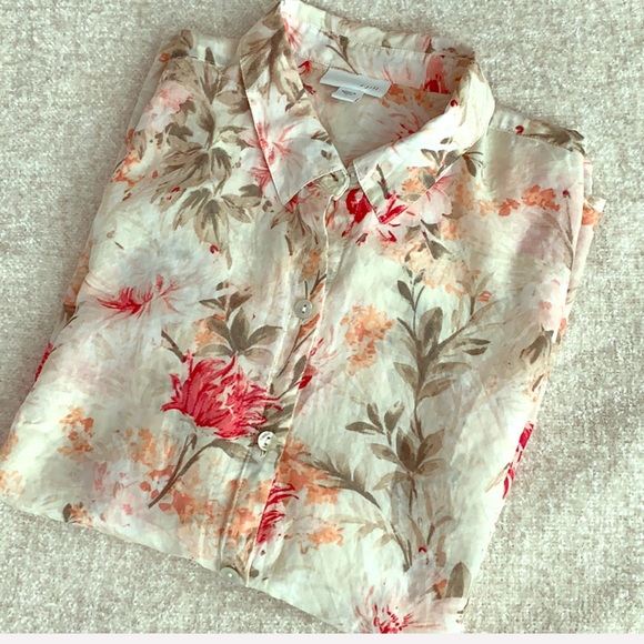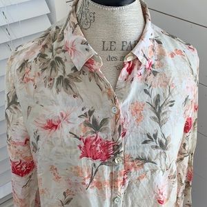 J Jill long sleeve floral shirt cotton and silk blend Size S 26” length previously loved No rips or stains