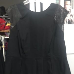Black with net design capped sleeves peplum top
