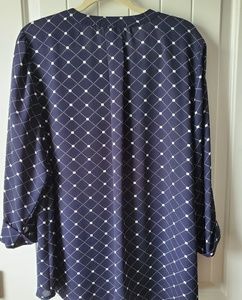 Blue and white chiffon style long sleeve blouse buttons up. Great for work. Gently worn from a smoke free home.