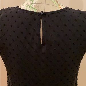 Very feminine black sheer lightweight blouse with black underlay, sleeveless, button loop neck closure in back,