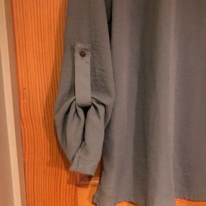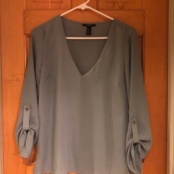 Seafoam green blouse. V-neck and button 3/4 sleeves.