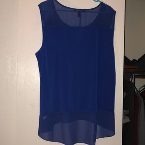 Bright blue with faux zippers on the shoulder, this blouse is so beautiful!