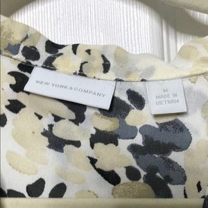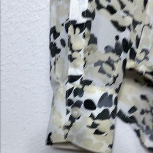 Cream sheer blouse with gray and black pattern throughout. This is a wrap top, no buttons except on the sleeves.