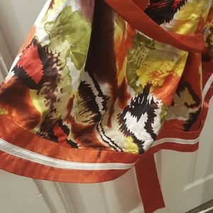 Ashley stewart belted one shoulder fall colored blouse. Looks great with a pair of jeans or dress pants. Leggings would also set this off.