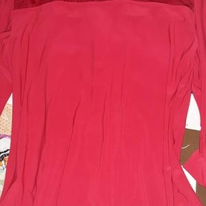 Beautiful ladies blouse in red..with a gorgeous lace pattern design on the upper back...3/4 length sleeves,v-neck and four snap buttons