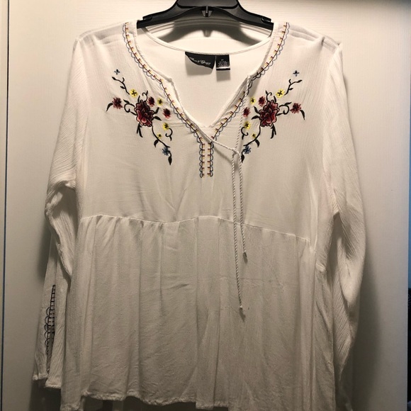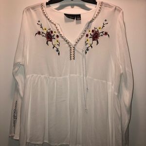 White dress blouse with embroidery. From a boutique.