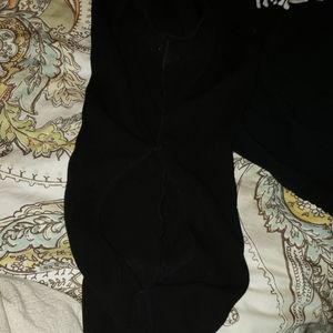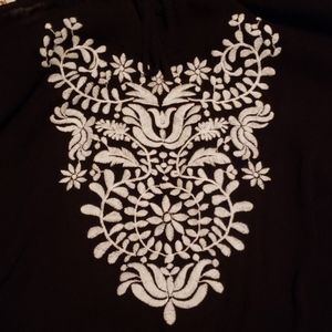 Lite black blouse with embroidered design on front. Lon sleeve but the sleeves are slitted down the side so both your upper and lower arm poke through