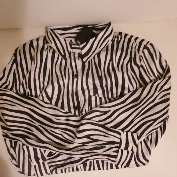 Brand new w/tags zebra print button up blouse. Good to dress up or down jeans or a skirt, you could never go wrong.