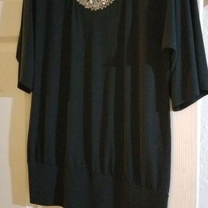 Beautiful black hip band blouse with bling. Great with slacks and jacket or jeans and great black heel boots
