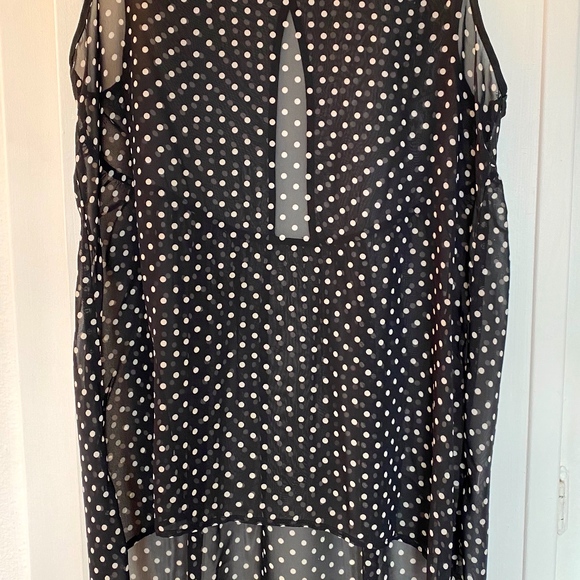Sheer Black with white polka dots, longer in back, you can see the open in the back, so darn cute!