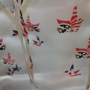Beautiful blouse. Not sure of material. Could be Rayon. It says xxl on the tag but it's more like an xl.