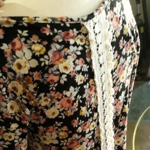 Black and floral blouse with a white lace stripe in the back