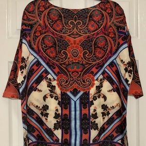 Blouse with exclusive print in polyester silk touch. Only the sleeves have stretch. New with tags.