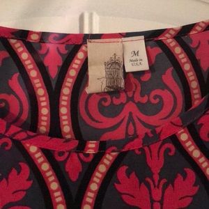 Multi color blouse with pink, black, gray, and white. I am not sure what brand but I did take a photo of the tag