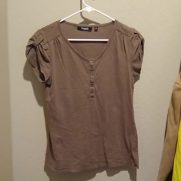 Threads Brown cup sleeves adorned with buttons and pleated shoulders