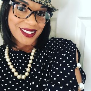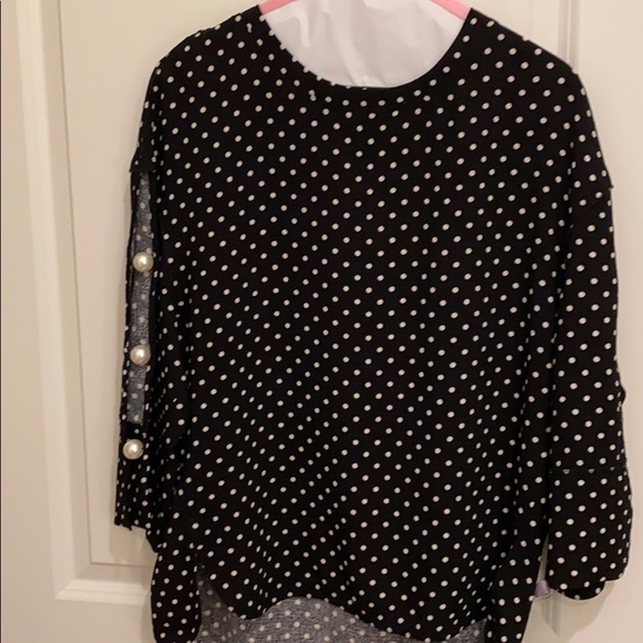 Black White Polka Dot Blouse w/ Faux Pearl sleeves!