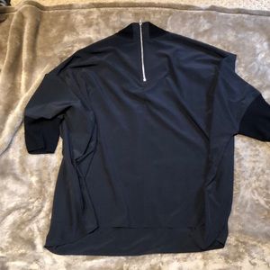 Super sporty athlete blouse made of poly blend and knit neckline and cuffs. Sleeves are above the elbows.