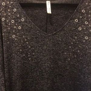 30 inch black,gray and white blouse with silver grommets