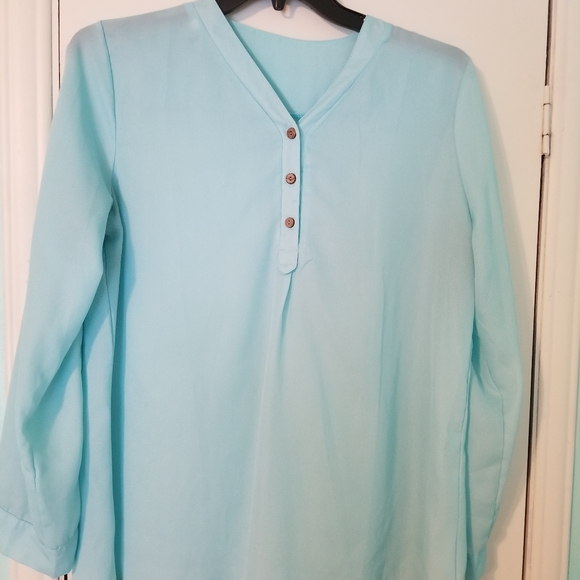 Women's long sleeve (can be 3/4) light turquoise blouse, lightweight, sz L