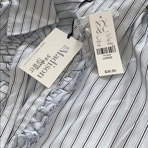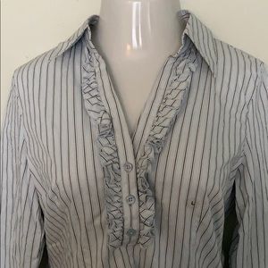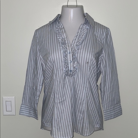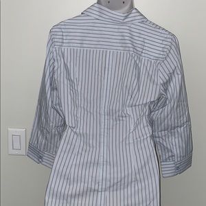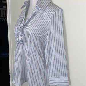 3/4 button sleeve shirt with v-neck cute 3 button ruffle detail...black and white stripes with collar...never used!