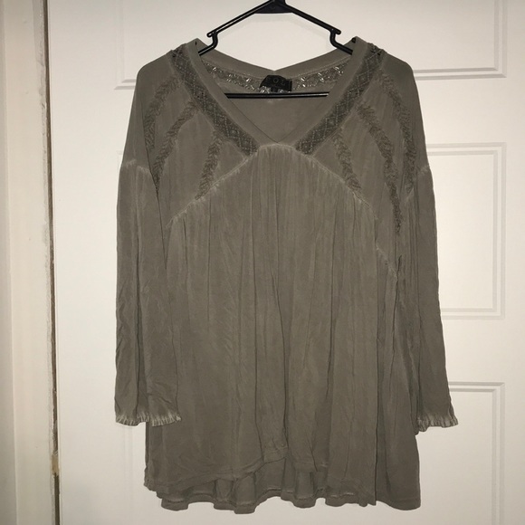 Green Blouse/Top with Lace applications // very flowy