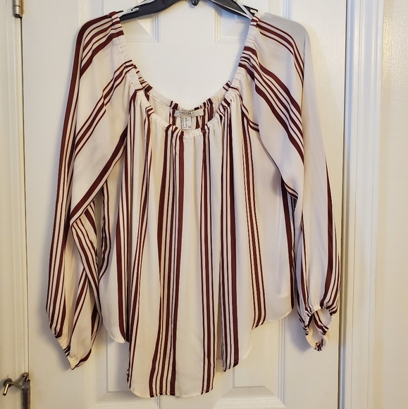 Burgundy and cream striped blouse, can be worn off shoulder too.