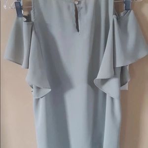 Open shoulder light green womens top