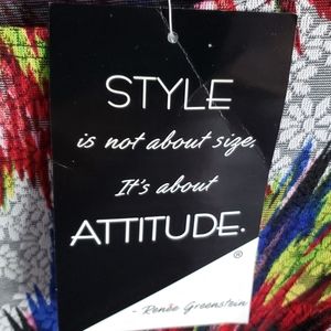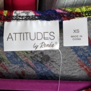 Beautiful and colorful blue, yellow, red, black and cream, stretchy long sleeve shirt, front gather on right side.